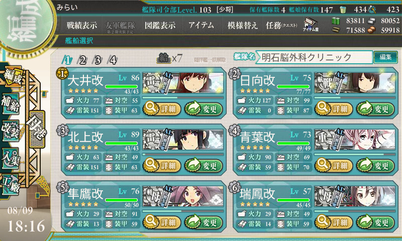 結局消費艦は19隻、あきつ丸を投入した以外は最少数で攻略できました