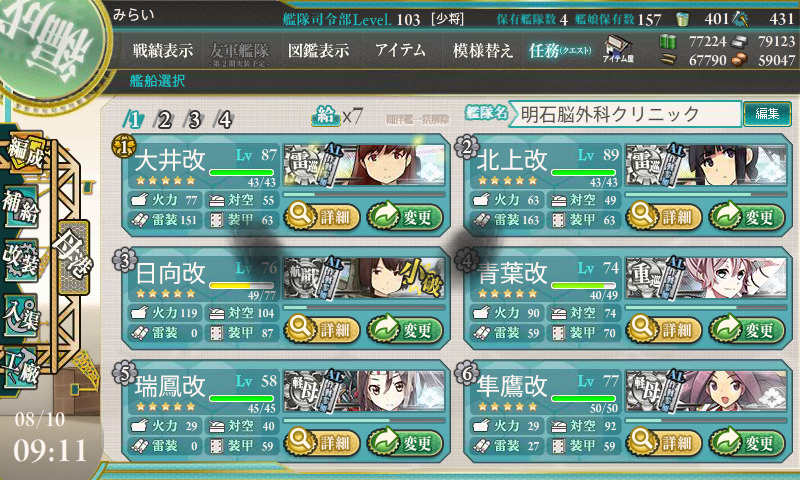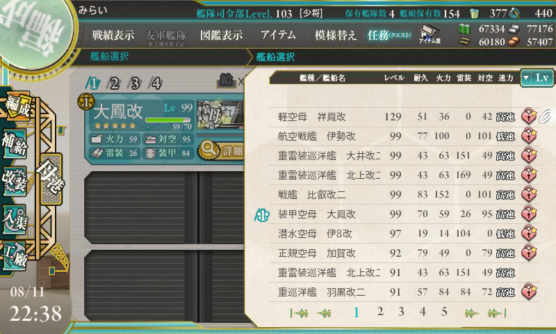軽空を4隻温存したので、レベル50台のヅホ(義妹)を投入することに