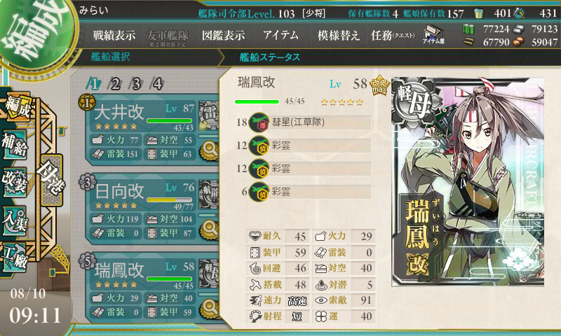 索敵値が足りずにそれまくったので、瑞鳳怒りの彩雲3積みモード