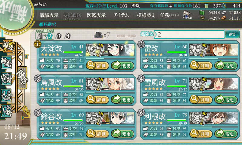 E-6用の戦力も残して配分しているので、レベル50台の艦も使ったAL作戦がかなり厳しかったです